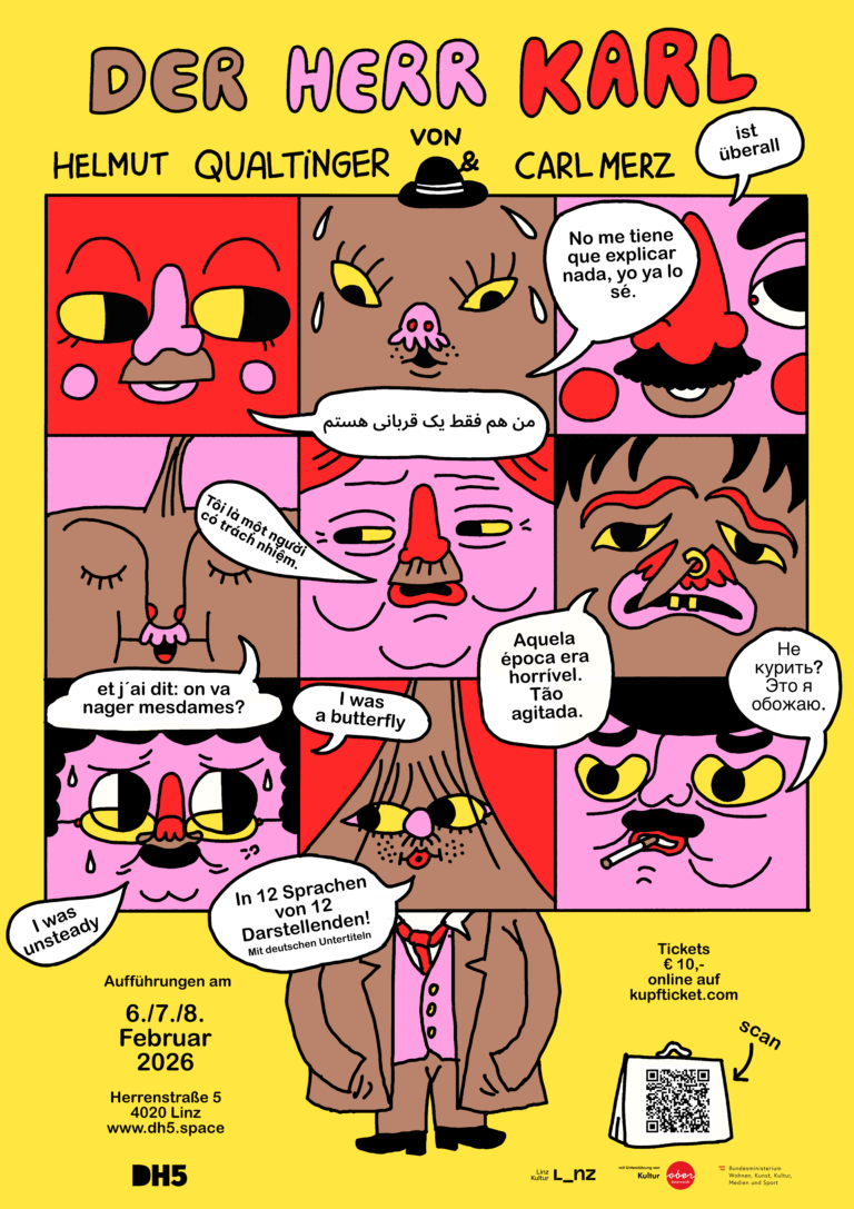 Der Herr Karl ist kein schillernder Bösewicht im Format von Vito Corleone, er ist vielmehr ein richtiges Würschtl, aber ein böses. Die Annahme, dass das „böse Würschtl“ eine Universalie in hierarchischen Gesellschaften ist, hat den Herrn Karl für dieses interkulturelle Sprach- und Theaterexperiment empfohlen. In den Sprachcafés, beim Übersetzen, kam viel Erlebtes an die Oberfläche. Genug, um daraus einen eigenen „Herr Karl“ zu machen. Der Herr Karl ist tatsächlich überall. Es ist diese banale Bosheit, die aus einer vermeintlichen Existenzangst heraus die Arbeit von Regimes erledigt.