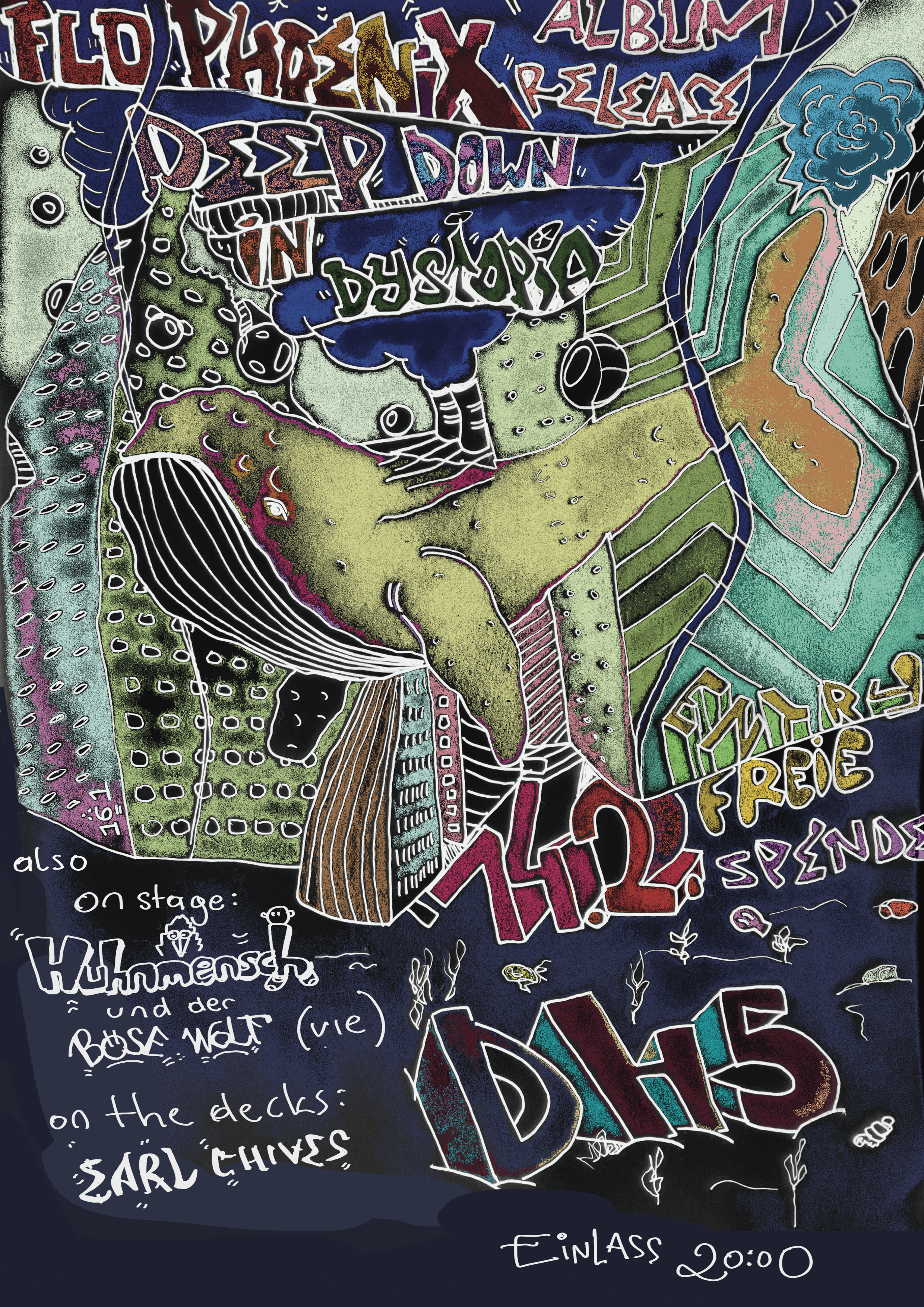 Flo Phoenix releast sein Album „Deep down in Dystopia“, das sich zwischen Verarbeitung des Schmerzes der dystopischen Verhältnisse und der Suche nach einer Möglichkeit die Welt anders zu denken bewegt. Immer mit viel Liebe für die Vibrationen und Schwingungen der Silben – der MC als moderner Reimschamanist – denn: Worte wirken.